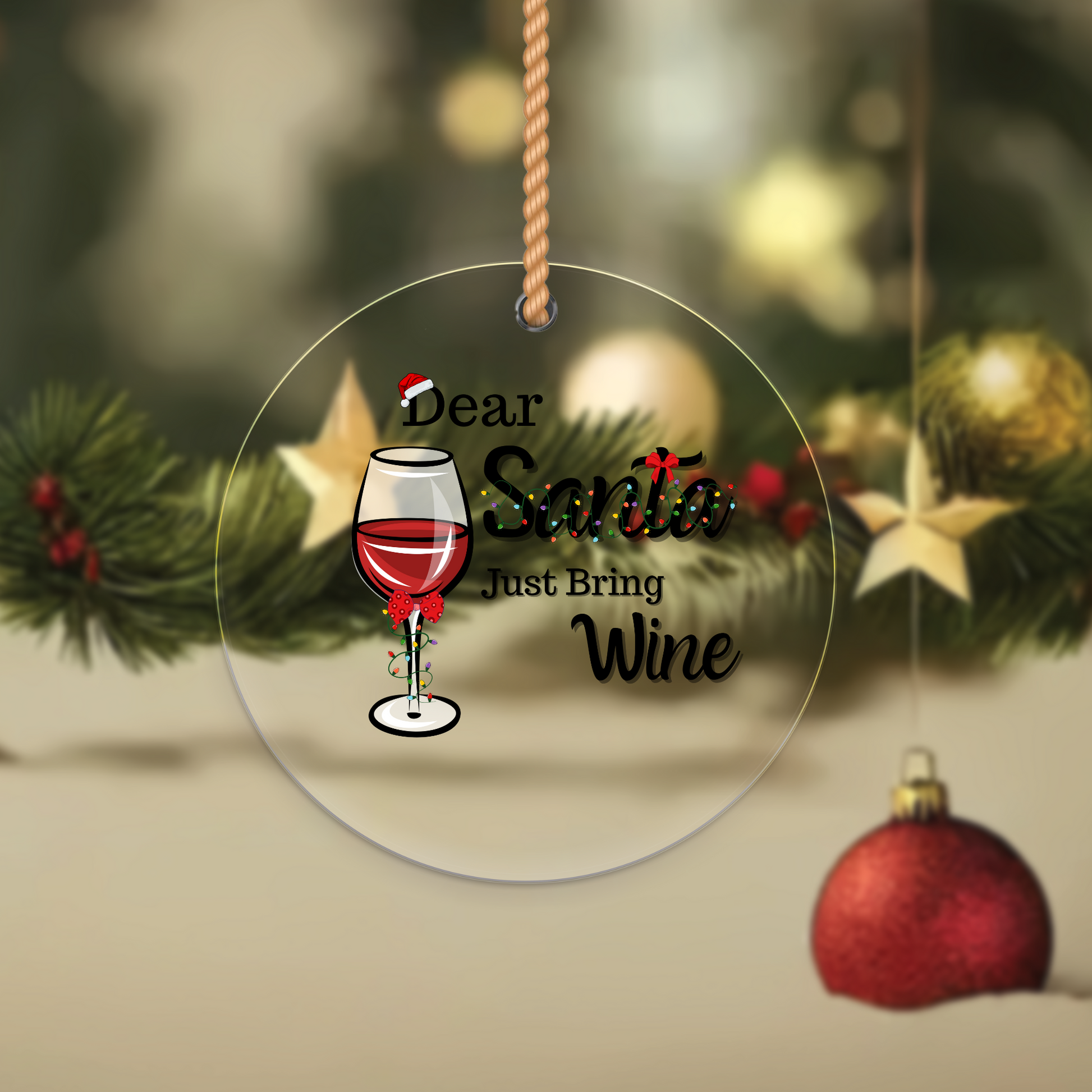 Dear Santa Just Bring Wine - Christmas Ornament UV DTF