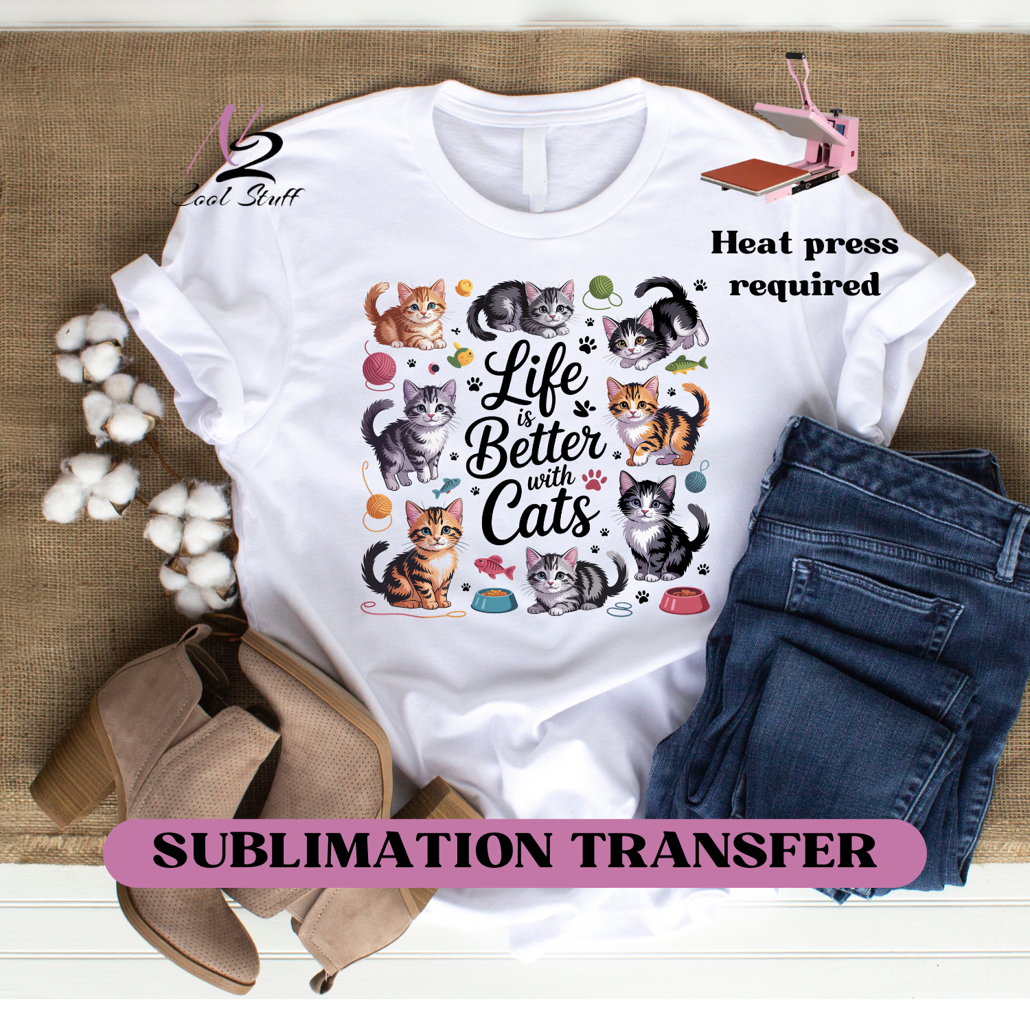 Life is better with cats-Ready to press SUBLIMATION transfer